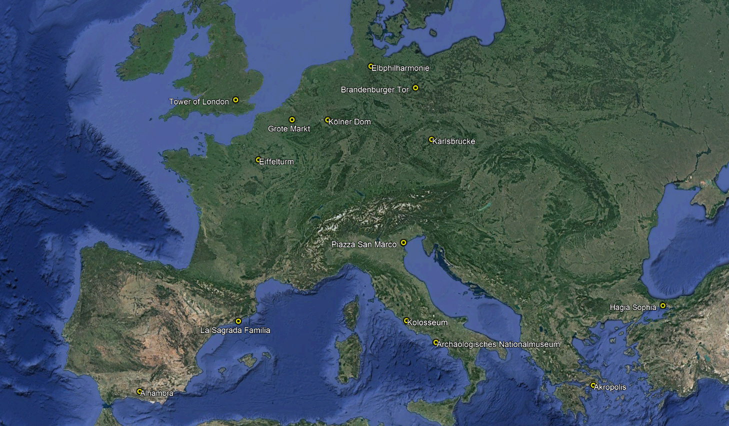 Um Ihnen einen Einblick in die Ergebnisse einer K.A.R.L.®-Analyse zu bieten, haben wir exemplarisch europäische Sehenswürdigkeiten analysiert (*):